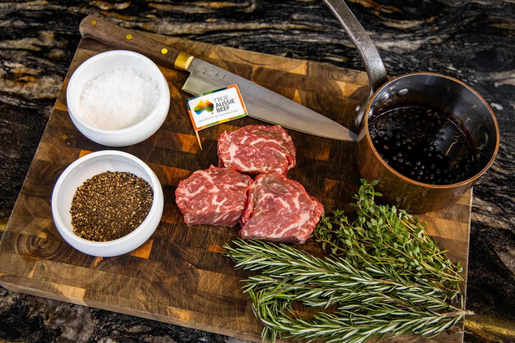 สเต็กเนื้อพริกไทยดำ ราดซอสพริกไทย (Black Pepper Steak with Green Pepper Corn Sauce) เมนูแสนอร่อยที่เหมาะกับงานเลี้ยงทุกโอกาสโดยฝีมือการคิดค้นสูตรสไตล์ของเชฟอาร์ต-ศุภมงคล ศุภพิพัฒน์ ผู้บุกเบิกบริการอาหารแบบ Chef Table รายแรกของเมืองไทย ซึ่งเชฟอาร์ตเชื่อว่าซอสกรีนเป็ปเปอร์คอร์นคือสิ่งสำคัญที่ช่วยให้สเต็กระเบิดรสชาติความอร่อยได้อย่างสมบูรณ์แบบ จึงได้นำสูตรมาแบ่งปันแก่คนรักเนื้อในแคมเปญนี้ เชฟอาร์ตเลือกใช้คัตเนื้อวัวออสเตรเลียส่วนสันในซึ่งเป็นส่วนที่นุ่มที่สุดด้านในสะโพก นำมาผสมผสานกับซอสที่ปรุงจากหอมแดง เม็ดพริกไทยอ่อน เนย คอนญัก น้ำซุปเนื้อ แป้งข้าวโพด เม็ดพริกไทยบด และเฮฟวี่ครีม จนกลายเป็นซอสแสนอร่อย