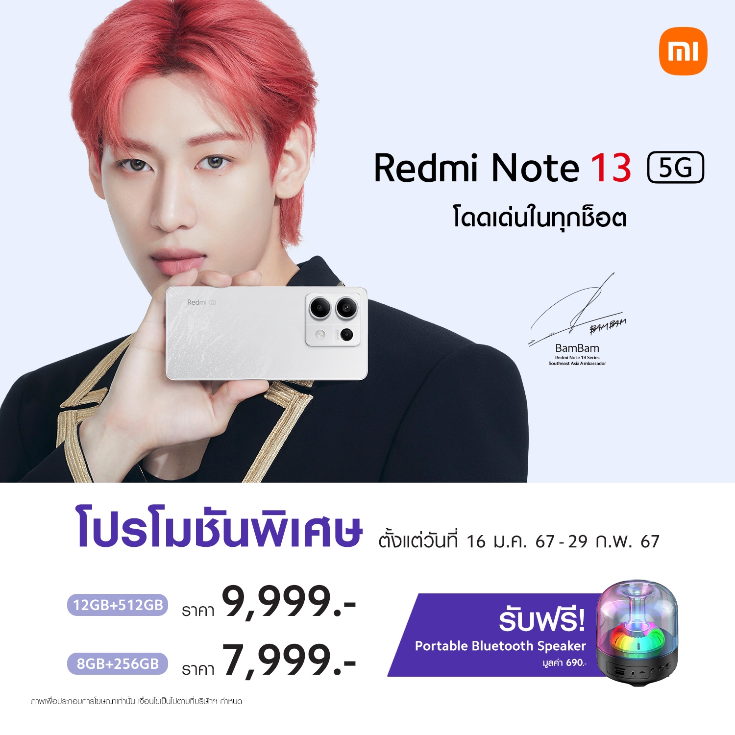 · Redmi Note 13 5G รุ่นความจุ 8GB+256GB วางจำหน่ายในราคา 7,999 บาท