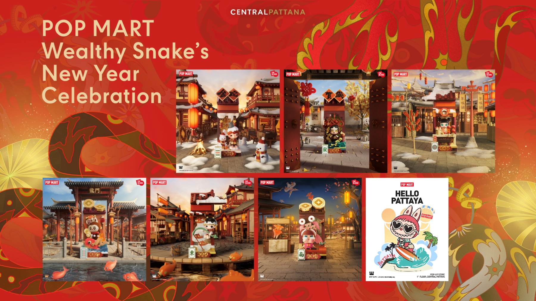 จับมือ POP MART ทำจุด Art Installation คาแรกเตอร์ฮิต ในธีม Wealthy Snake’s New Year Celebration ที่เซ็นทรัล 8 สาขา คือ เซ็นทรัลเวิลด์, เวสต์เกต, ปิ่นเกล้า, ภูเก็ต, พัทยา, ขอนแก่น, สมุย และ ลาดพร้าว ห้ามพลาด หนึ่งเดียวในโลก Pop-up Store By the Sea ที่ เซ็นทรัล พัทยา ตั้งแต่ 10 มกราคม – 6 พฤษภาคม 2568